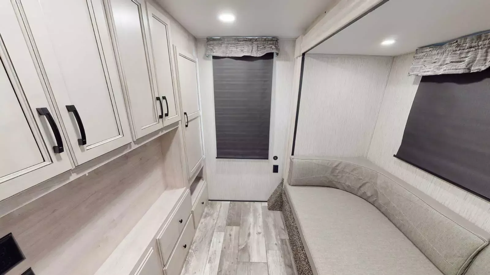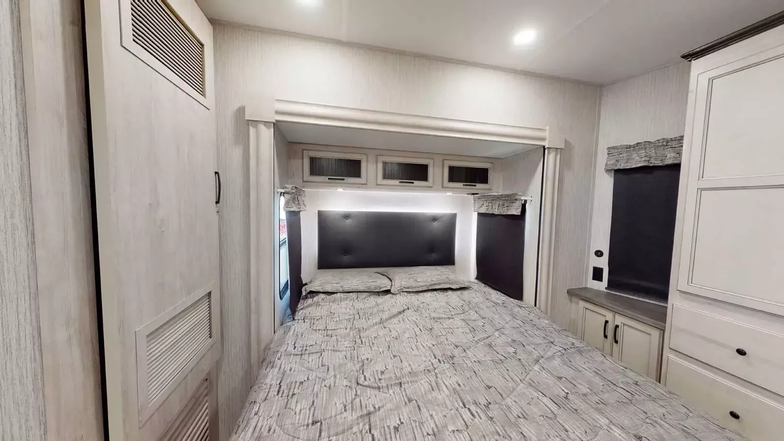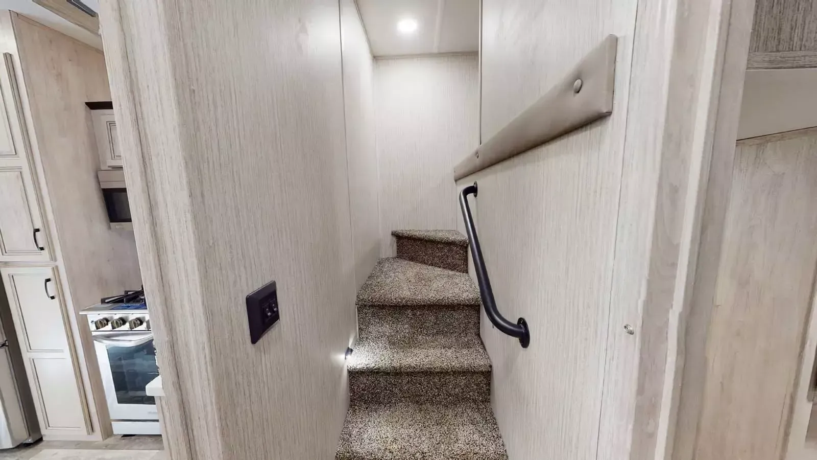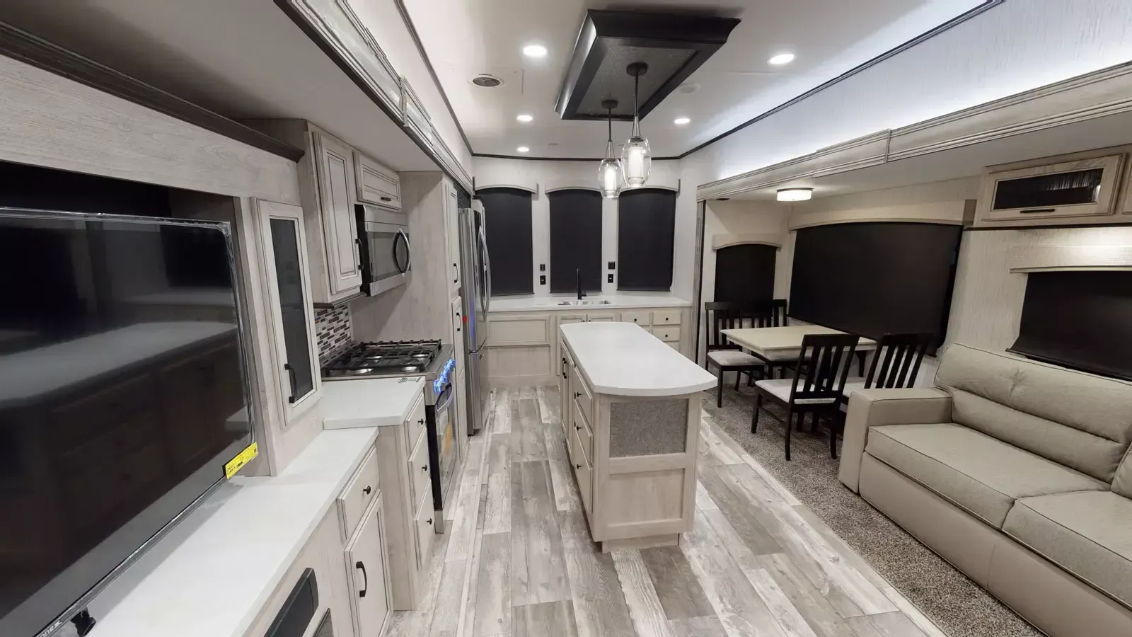 The 399LOFT is the ultimate package in destination living. If you have a full crew with you, or just visitors on the weekends, this floorplan has what you need for all occasions. A residential 22 cubic foot refrigerator, four burner cooktop and floor to ceiling pantry are just a few of the amenities that this floorplan offers. The winding staircase takes you to the top loft where extra sleeping space or storage space awaits.