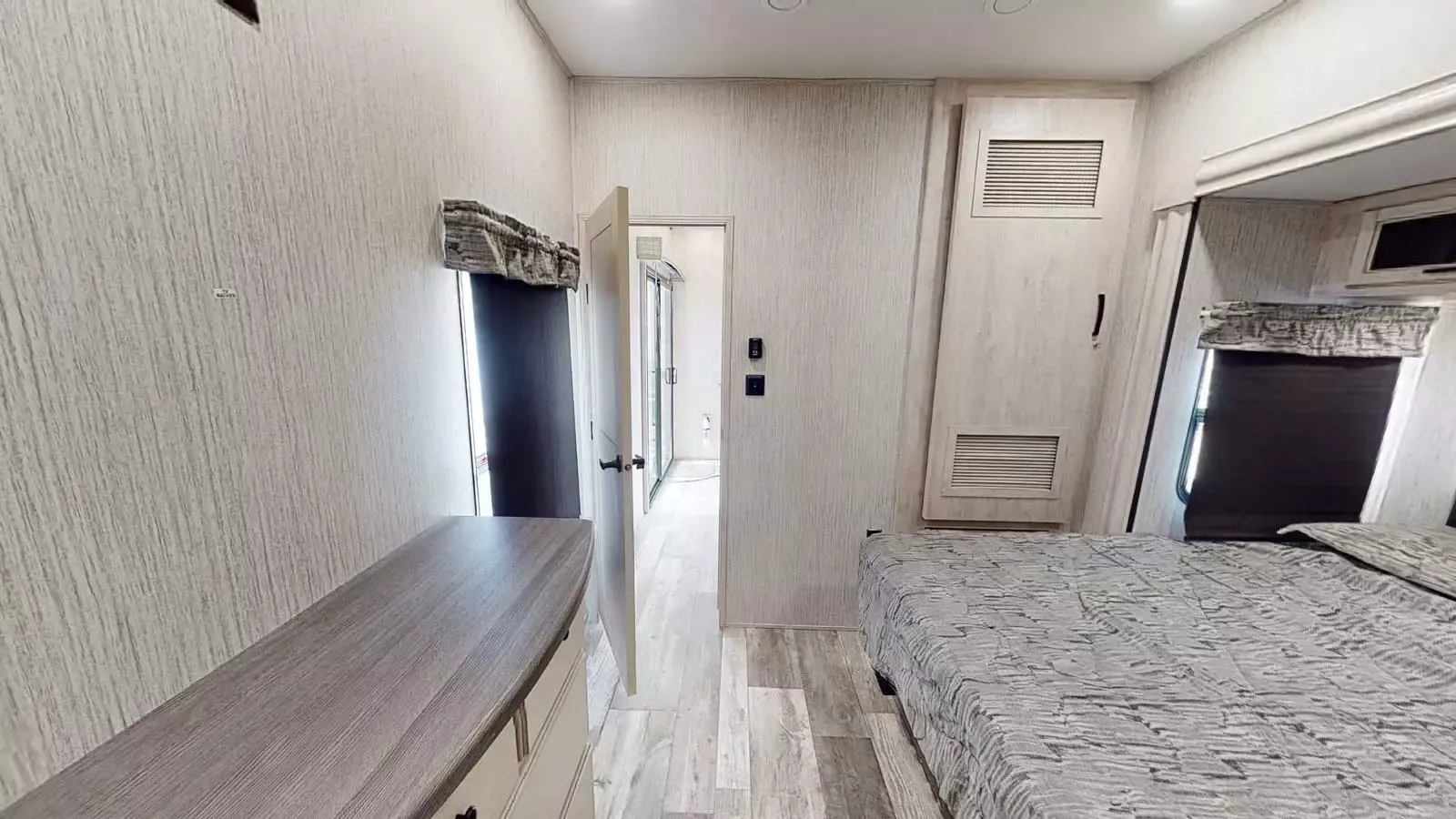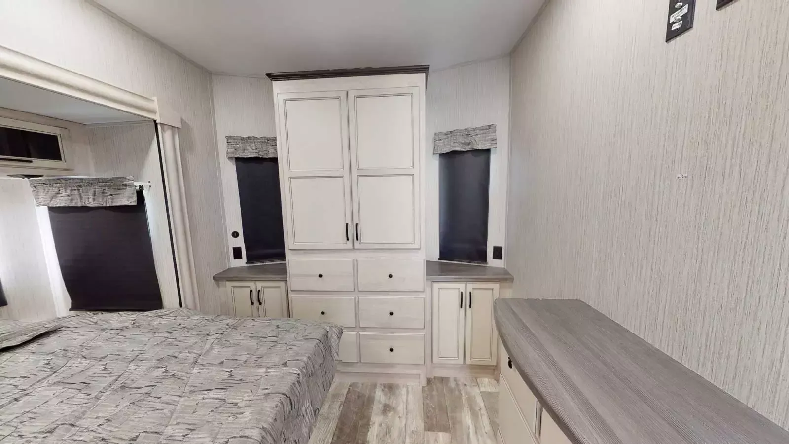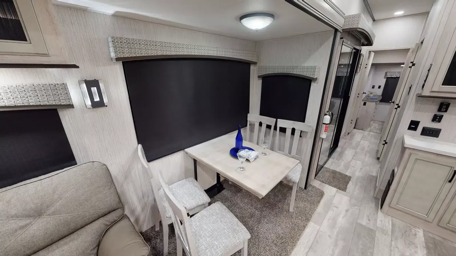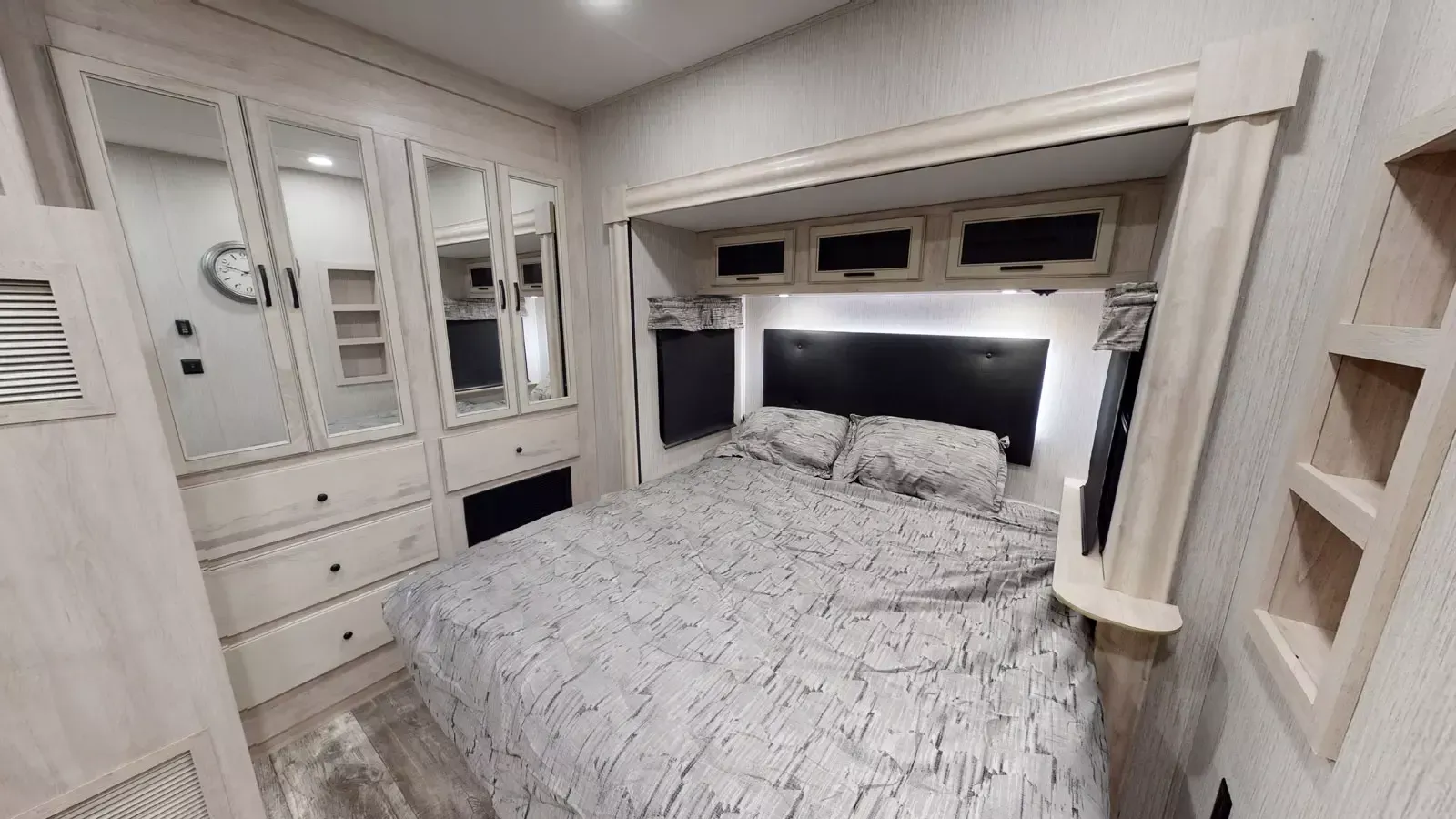 The 399LOFT is the ultimate package in destination living. If you have a full crew with you, or just visitors on the weekends, this floorplan has what you need for all occasions. A residential 22 cubic foot refrigerator, four burner cooktop and floor to ceiling pantry are just a few of the amenities that this floorplan offers. The winding staircase takes you to the top loft where extra sleeping space or storage space awaits.