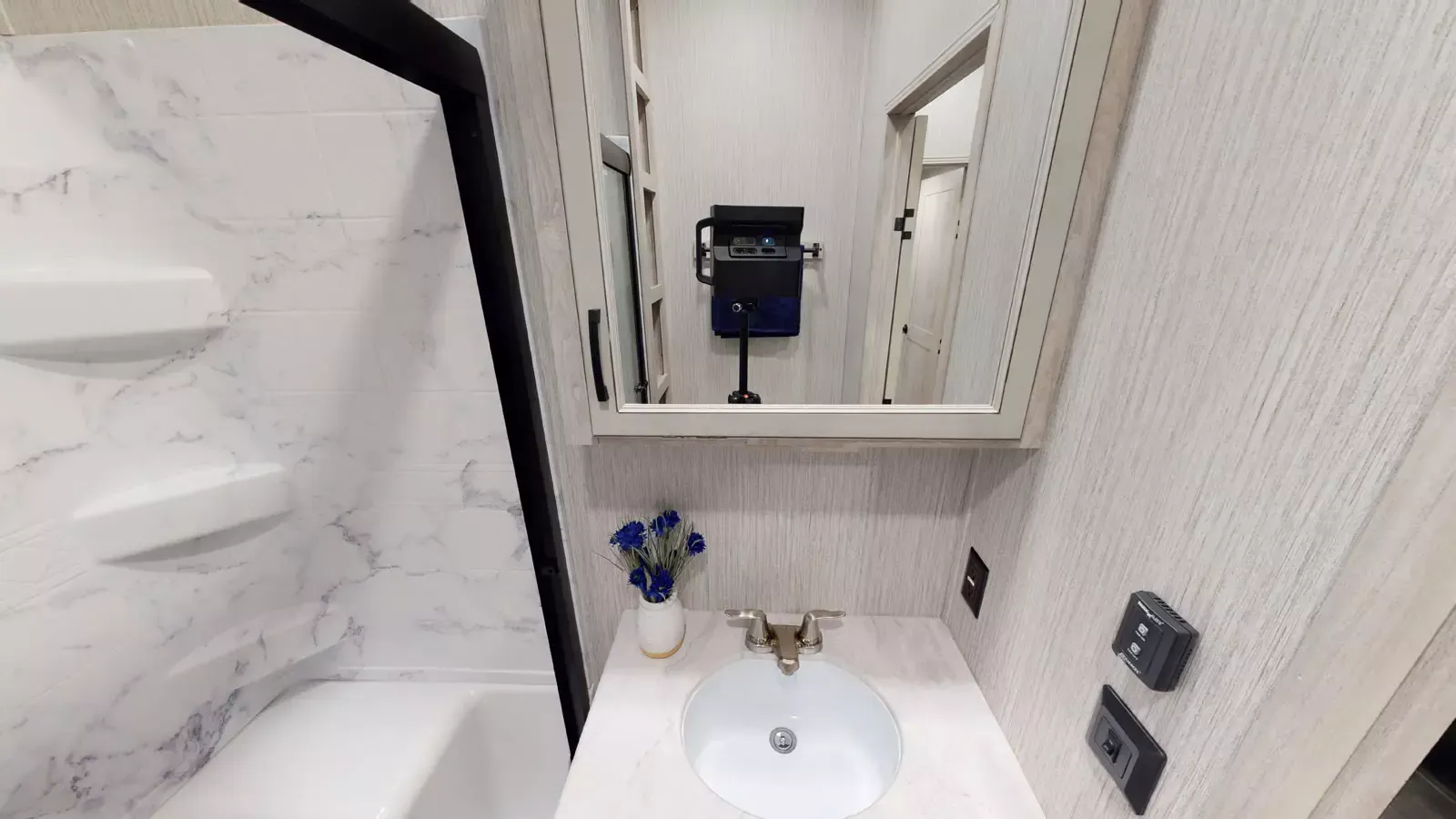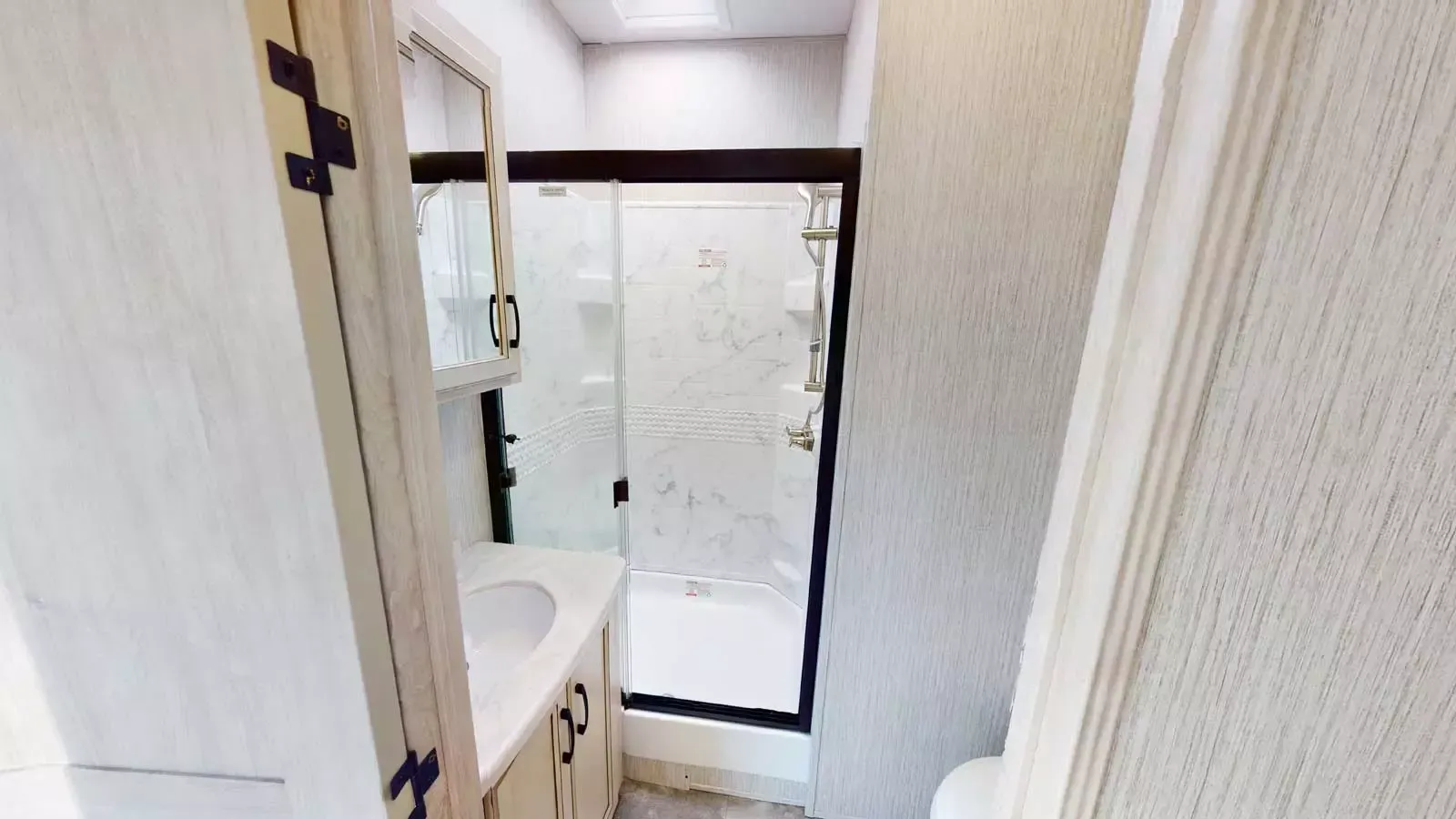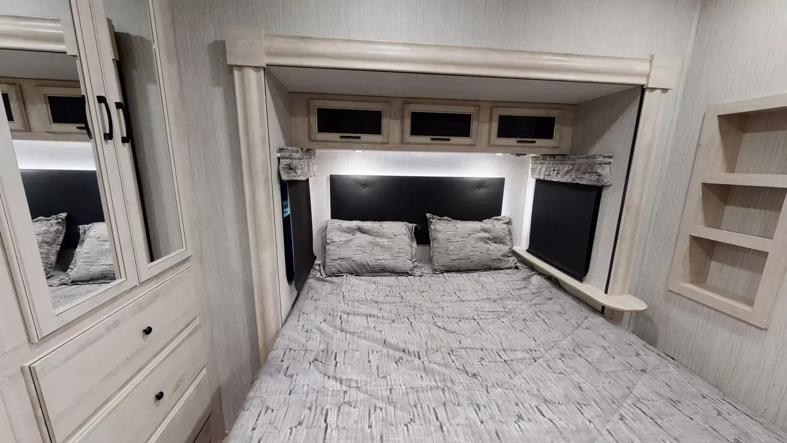 If you love cooking at your permanent site, the 402FK will be the perfect addition to your lifestyle. Featuring a spacious front kitchen layout, the large picture windows up front offer a tranquil view of nature. Endless countertop space ensures that you always have enough room to cook, without being cramped. This coach comes complete with a walk-in shower plus a seat, as well as theatre seating with a hidden bed for extra guests.